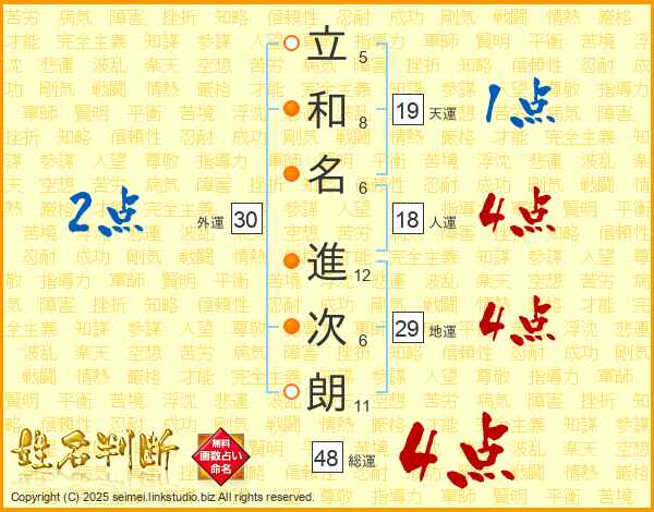 立(5画)和(8画)名(6画) 進(12画)次(6画)朗(11画)