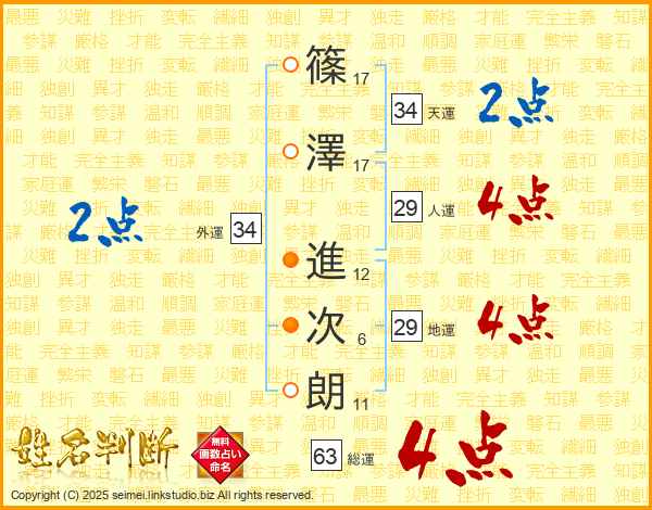 篠(17画)澤(17画) 進(12画)次(6画)朗(11画)