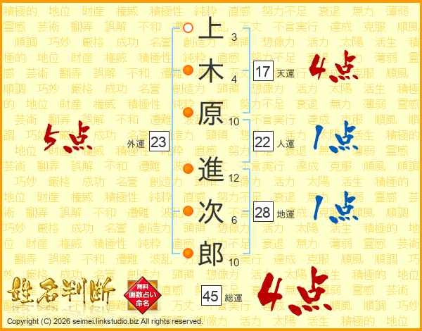 上木原進次郎さんの総運は45画の4点!