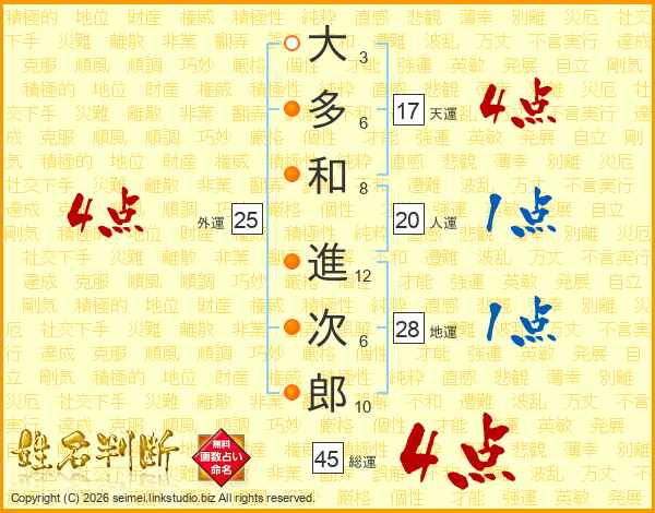 大多和進次郎さんの総運は45画の4点!
