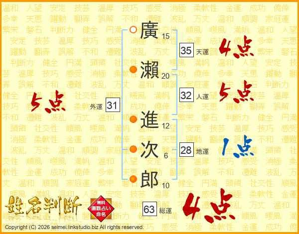 廣瀨進次郎さんの総運は63画の4点!