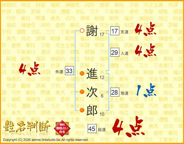 謝進次郎さんの総運は45画の4点!
