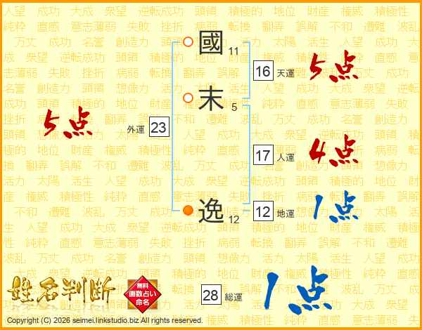 國末逸さんの天運は16画の5点!