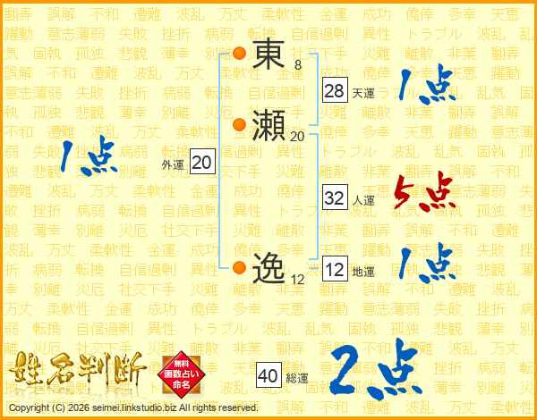 東瀬逸さんの人運は32画の5点!
