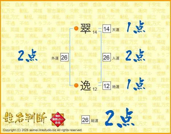 翠逸さんの総運は26画の2点!