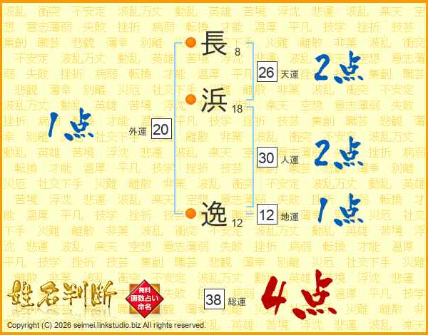 長浜逸さんの総運は38画の4点!