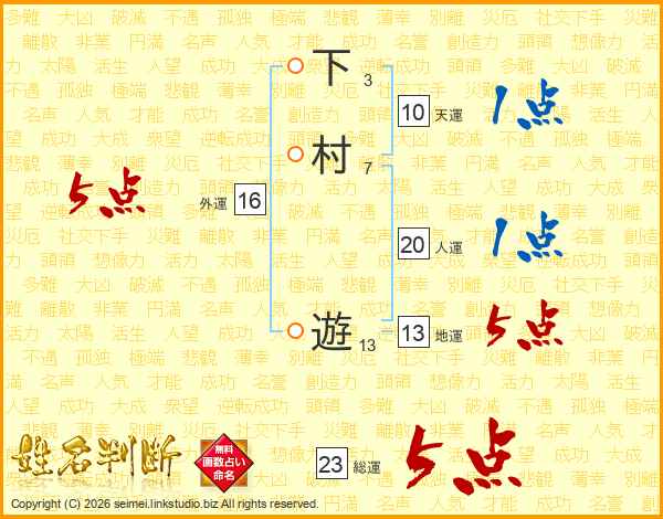 下村遊さんの総運は23画の5点!