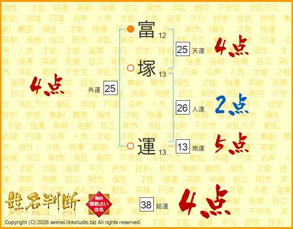 富塚運さんの総運は38画の4点!
