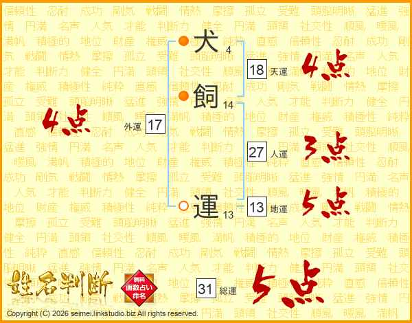 犬飼運さんの外運は17画の4点!