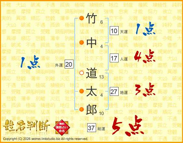 竹中道太郎さんの総運は37画の5点!