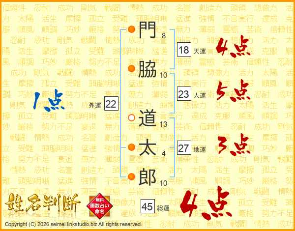 門脇道太郎さんの総運は45画の4点!