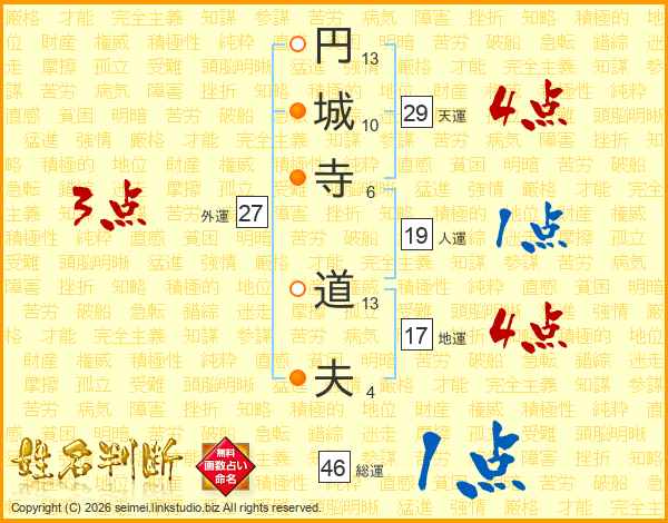 円城寺道夫さんの総運は46画の1点!