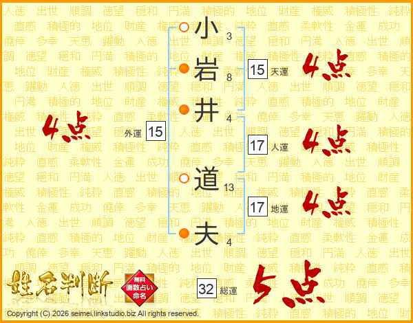 小岩井道夫さんの総運は32画の5点!