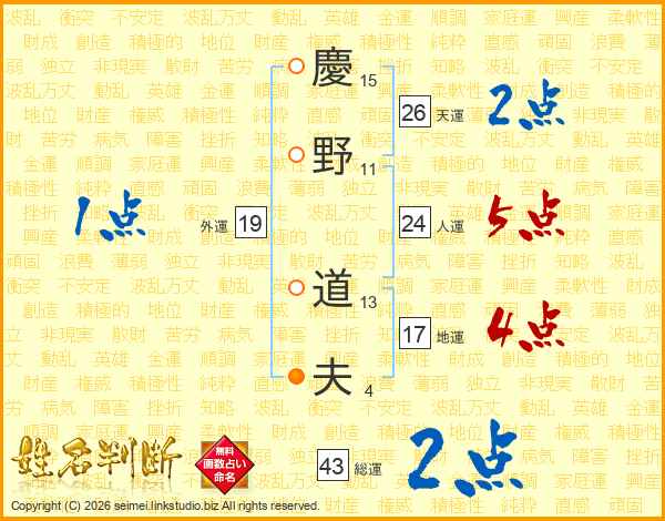慶野道夫さんの天運は26画の2点!