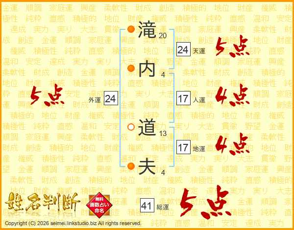 滝内道夫さんの総運は41画の5点!