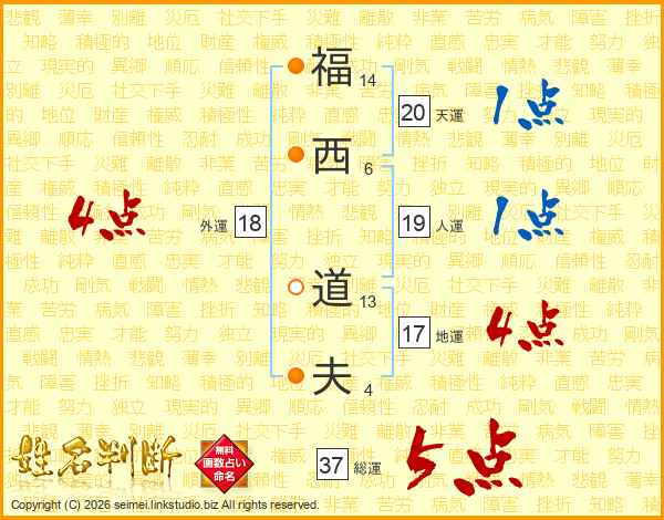 福西道夫さんの総運は37画の5点!