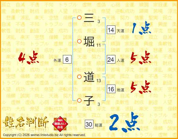 三堀道子さんの総運は30画の2点!