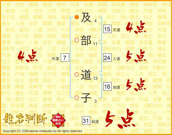 及部道子さんの総運は31画の5点!