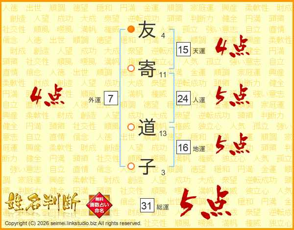 友寄道子さんの総運は31画の5点!