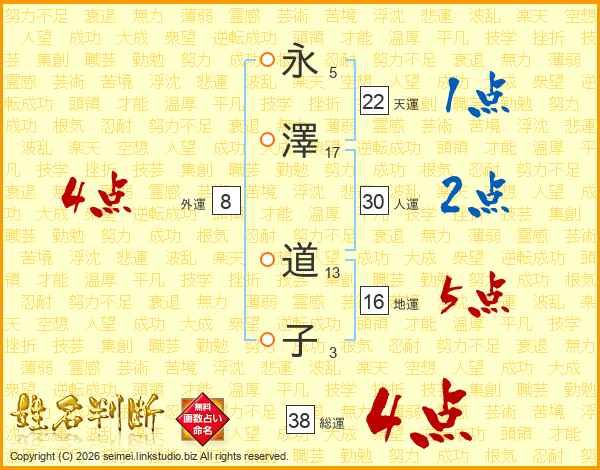 永澤道子さんの総運は38画の4点