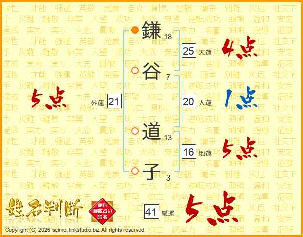 鎌谷道子さんの総運は41画の5点!