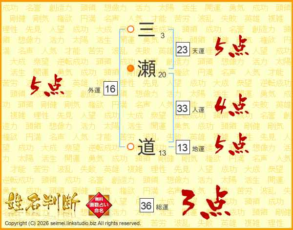 三瀬道さんの人運は33画の4点!