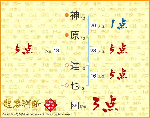 神原達也さんの総運は36画の3点!