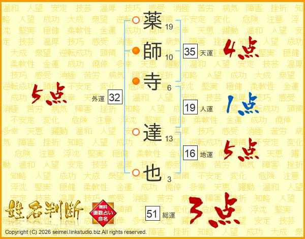 薬師寺達也さんの外運は32画の5点!