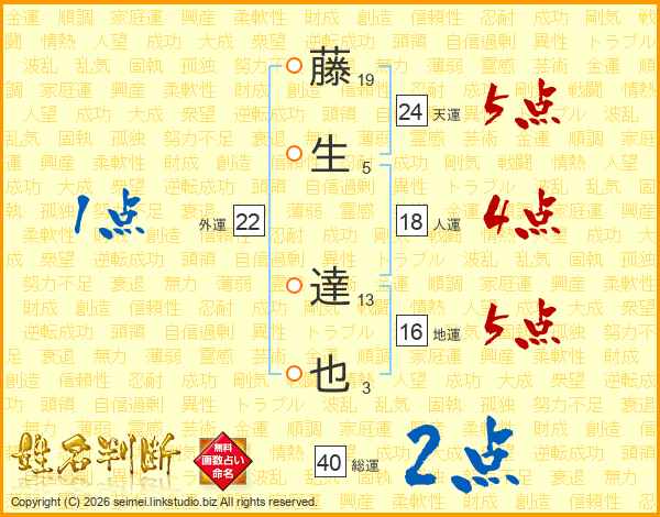 藤生達也さんの総運は40画の2点!