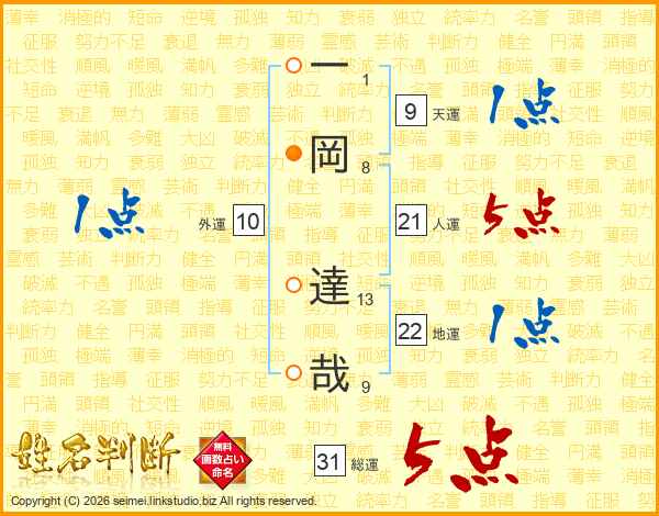 一岡達哉さんの総運は31画の5点!