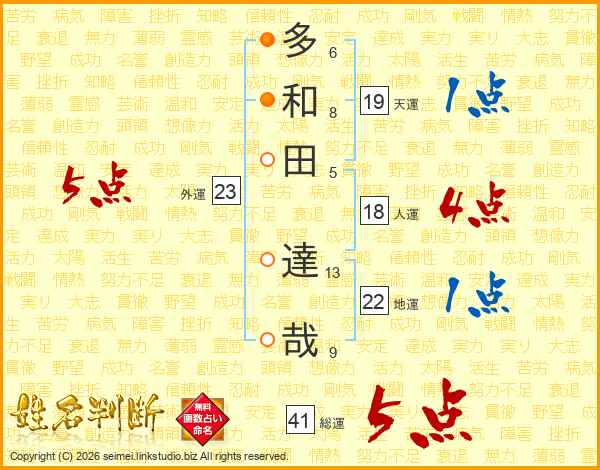 多和田達哉さんの総運は41画の5点!
