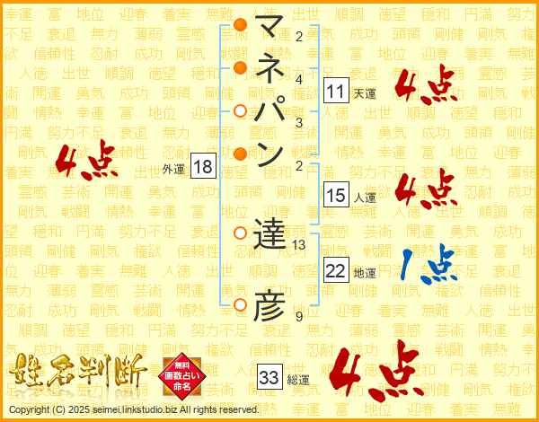 マネパン達彦さんの総運は33画の4点!