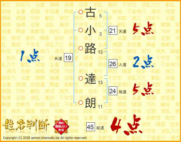 古小路達朗さんの総運は45画の4点!