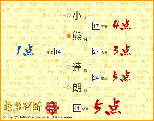 小熊達朗さんの総運は41画の5点!