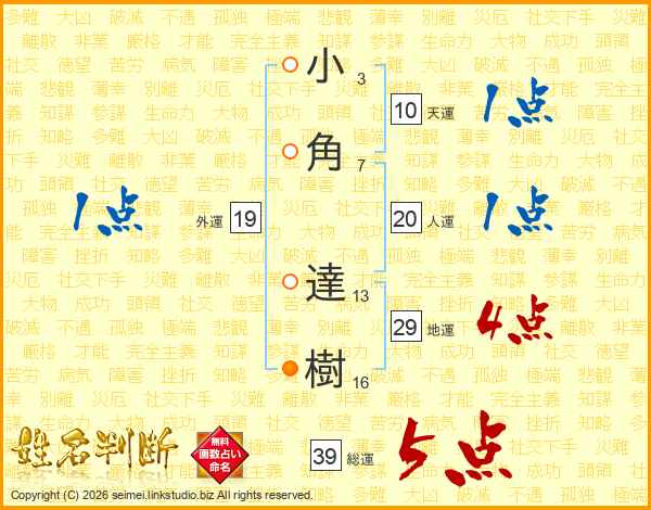 小角達樹さんの総運は39画の5点!