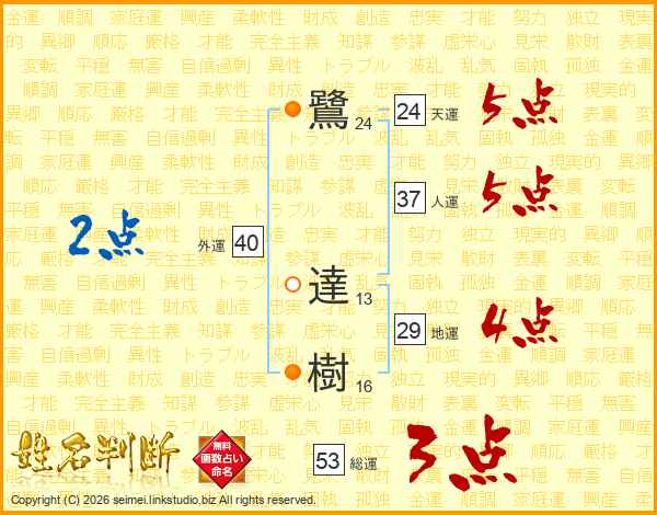 鷺達樹さんの総運は53画の3点!