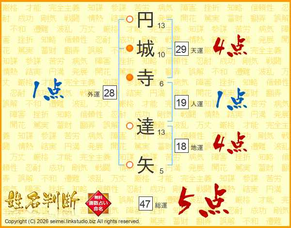 円(13画)城(10画)寺(6画) 達(13画)矢(5画)
