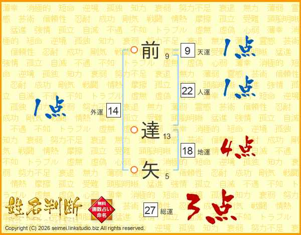 前達矢さんの総運は27画の3点!