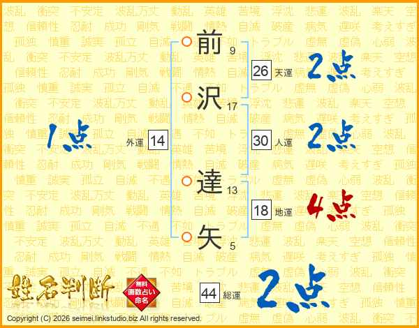 前沢達矢さんの天運は26画の2点!