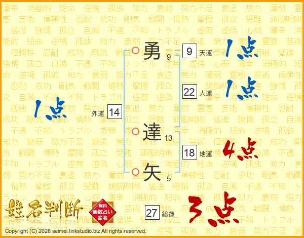 勇(9画) 達(13画)矢(5画)