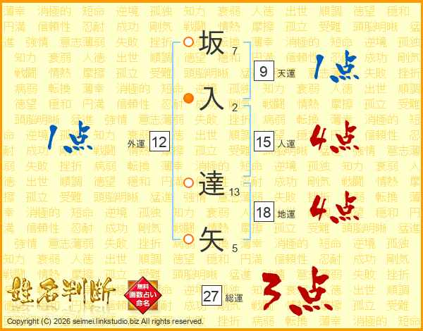 坂入達矢さんの総運は27画の3点!