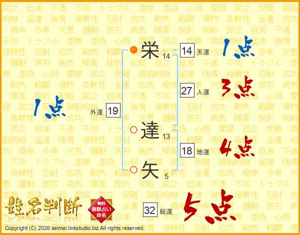 栄(14画) 達(13画)矢(5画)
