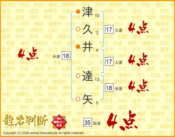 津久井達矢さんの総運は35画の4点!