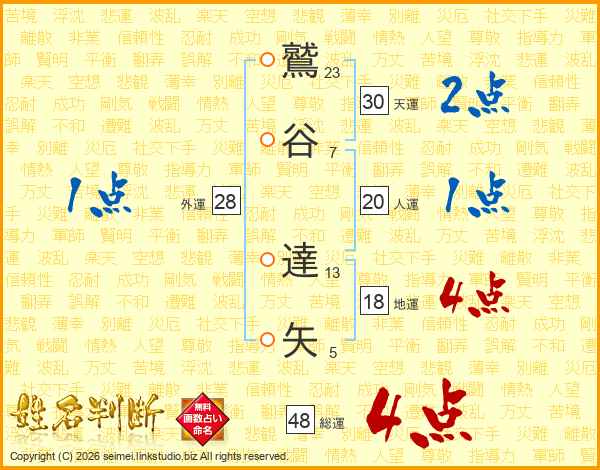 鷲谷達矢さんの天運は30画の2点!