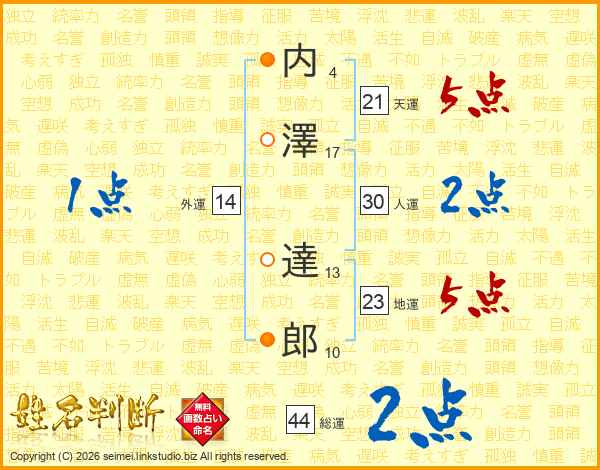 内澤達郎さんの総運は44画の2点!