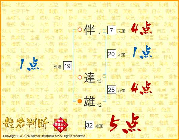 伴達雄さんの総運は32画の5点!