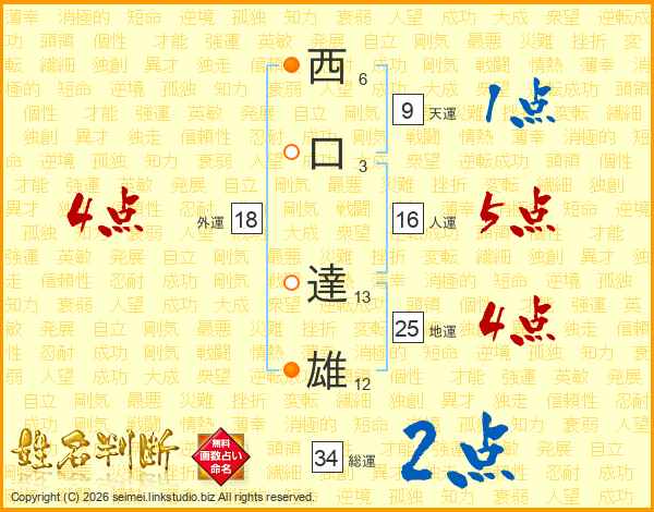 西口達雄さんの地運は25画の4点!