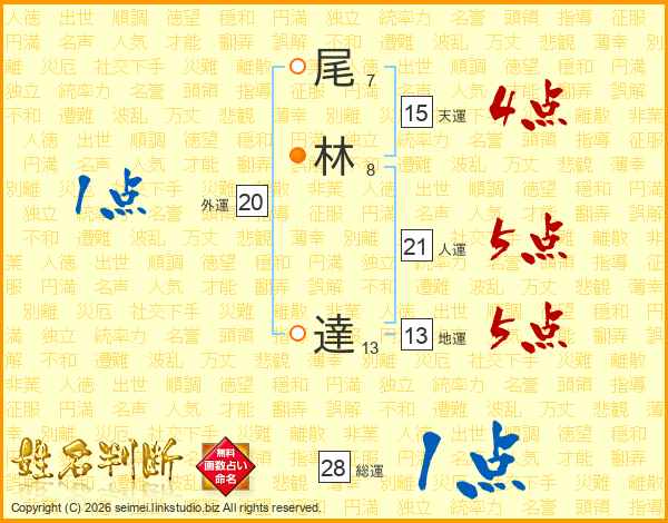 尾林達さんの人運は21画の5点!