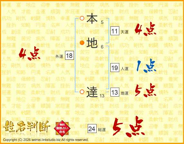 本地達さんの総運は24画の5点!