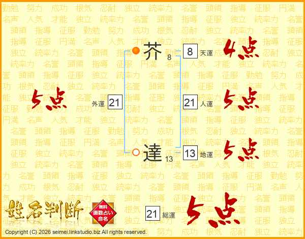 芥達さんの総運は21画の5点!